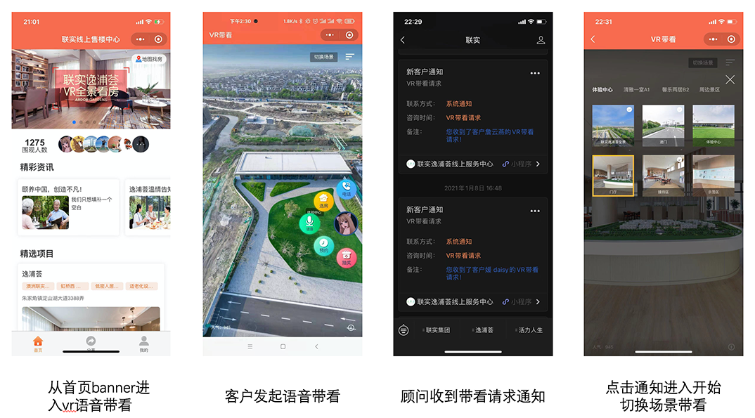 VR语音带看,实景真实模拟,实时语音互动,打破空间时间限制,降低客户的时间和路途成本,随时展示实景,双向实时语音交流,NLP语义洞察客户的核心需求。