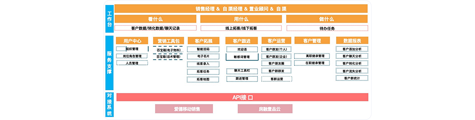 原圈为中建壹品基于企微构建了集团客户平台,为案场各角色全场景赋能。推出企微码、自动欢迎语、自动报备等功能解决拓客痛点;通过自动生成跟进记录、一键转发等提升客户跟进效率;利用自动营销、企微群发实现精准客户运营;借助企微分析报表、敏感词监控等强化客户管理。同时了制定企微 SOP管理办法、开展系统培训等保障实施。