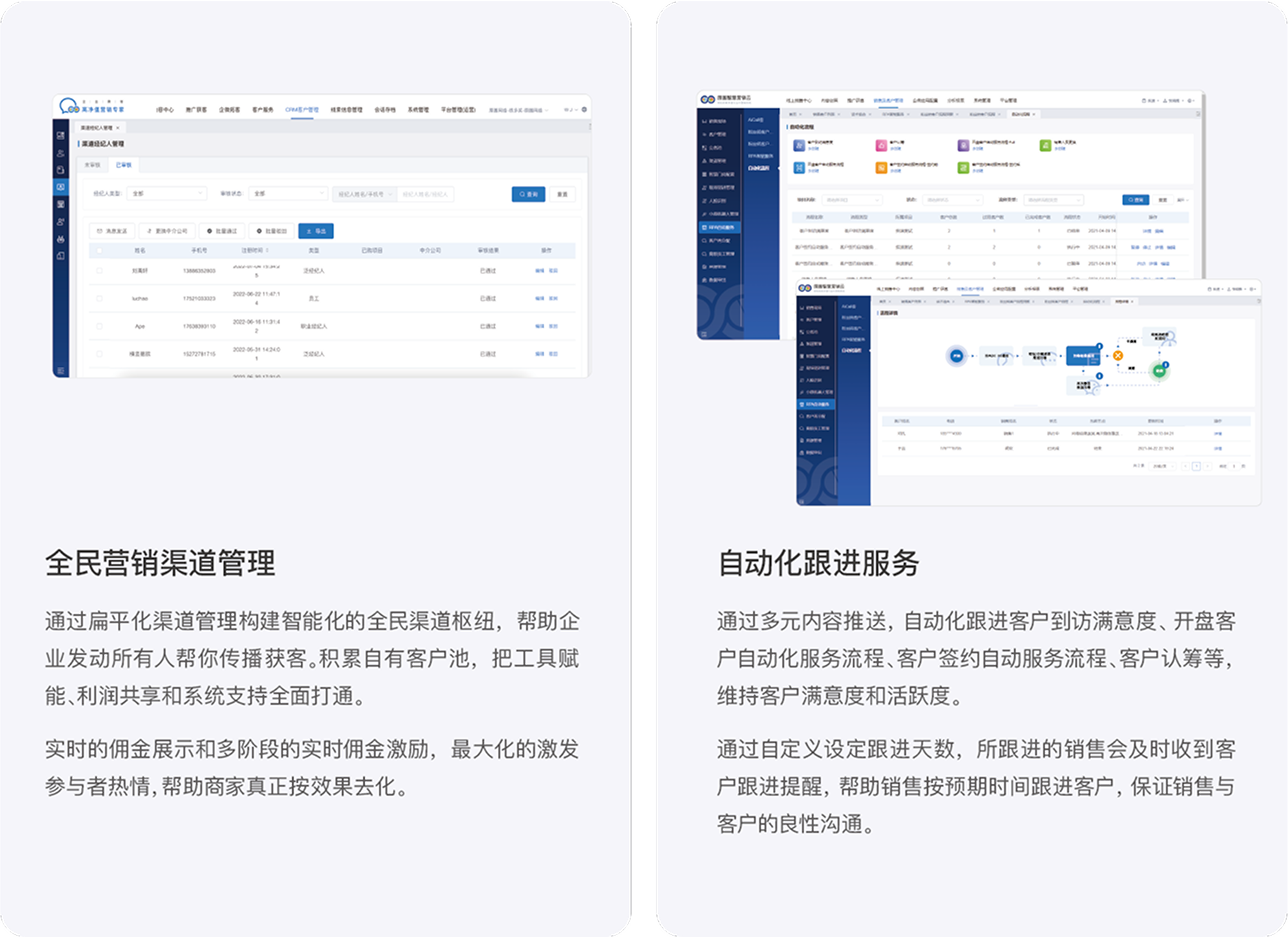 • 高效的销售流程管理由于高客单价,低消费频率的特点,高净值企业需要确保销售流程的顺畅和高效。CRM系统应能够支持销售人员从潜在客户识别、跟进、成交到售后服务的全流程管理,确保销售活动的有序进行。
